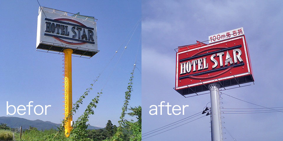 ネオントランスへ極度の負荷がかかる設計であったり、素材の質を落としたり等々安い工事には理由が必ずあります。こう言ったネオンサインは保守工事を頻繁に行う必要が生じる事例が多く見受けられます。安さを売り物にする業者の多くが保守工事をしたがらないケースも多く聞きます。 ランニングコストがバカにならない工事だからこそ当初予算は適性に組み、保守工事をキッチリ実行する事でオーナーへコストメリットを付与する思いでアド.ネオンは取り組みます。 ネオン工事は作る時は余り感じませんが、経年ネオンサインにガタが来た時が大変です。